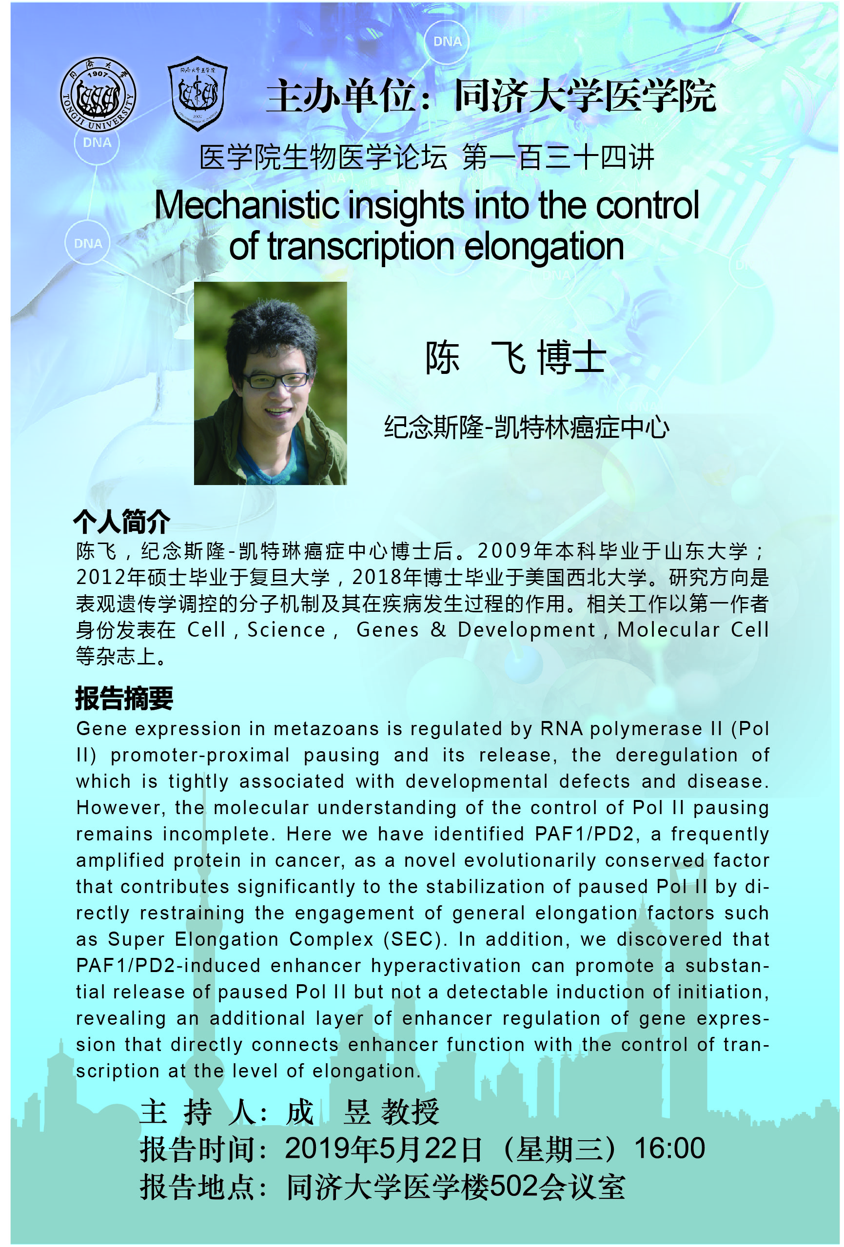 生物医学论坛第134讲:Mechanistic insights into the control of transcription elongation