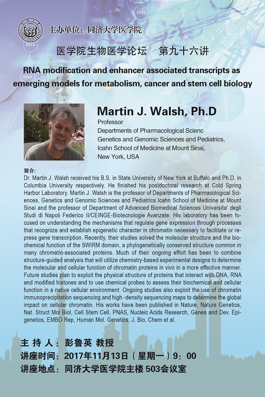 生物医学论坛第96讲:RNA modification and enhancer associated transcripts as emerging models for metabolism, cancer and stem cell biology
