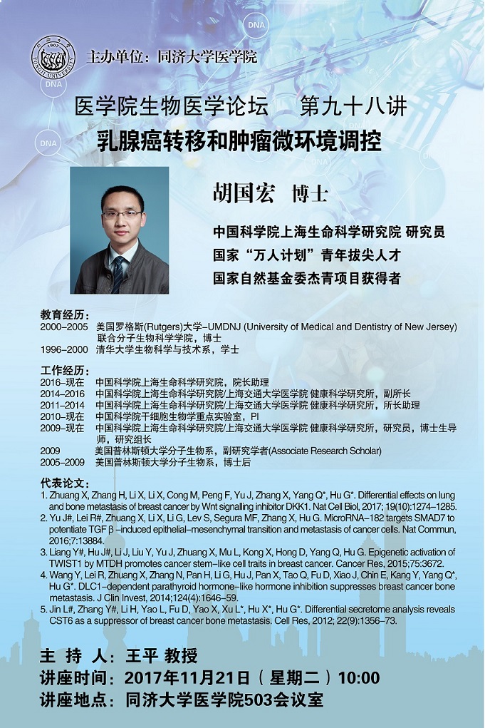 生物医学论坛第98讲:乳腺癌转移和肿瘤微环境调控