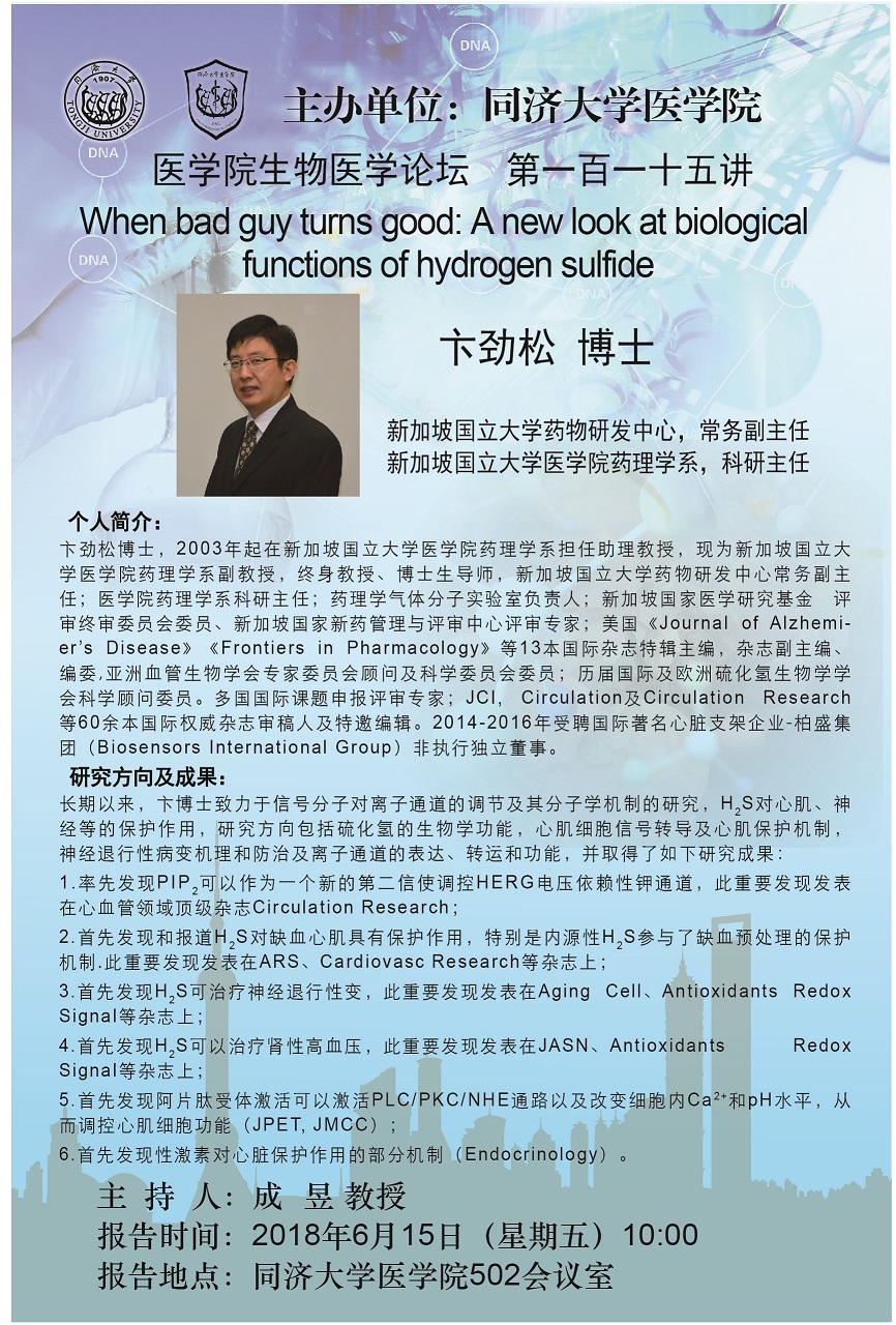 生物医学论坛第115讲:When bad guy turns good: A new look at biological functions of hydrogen sulfide
