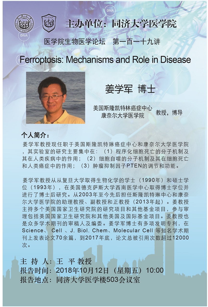 报告题目:Ferroptosis: Mechanisms and Role in Disease