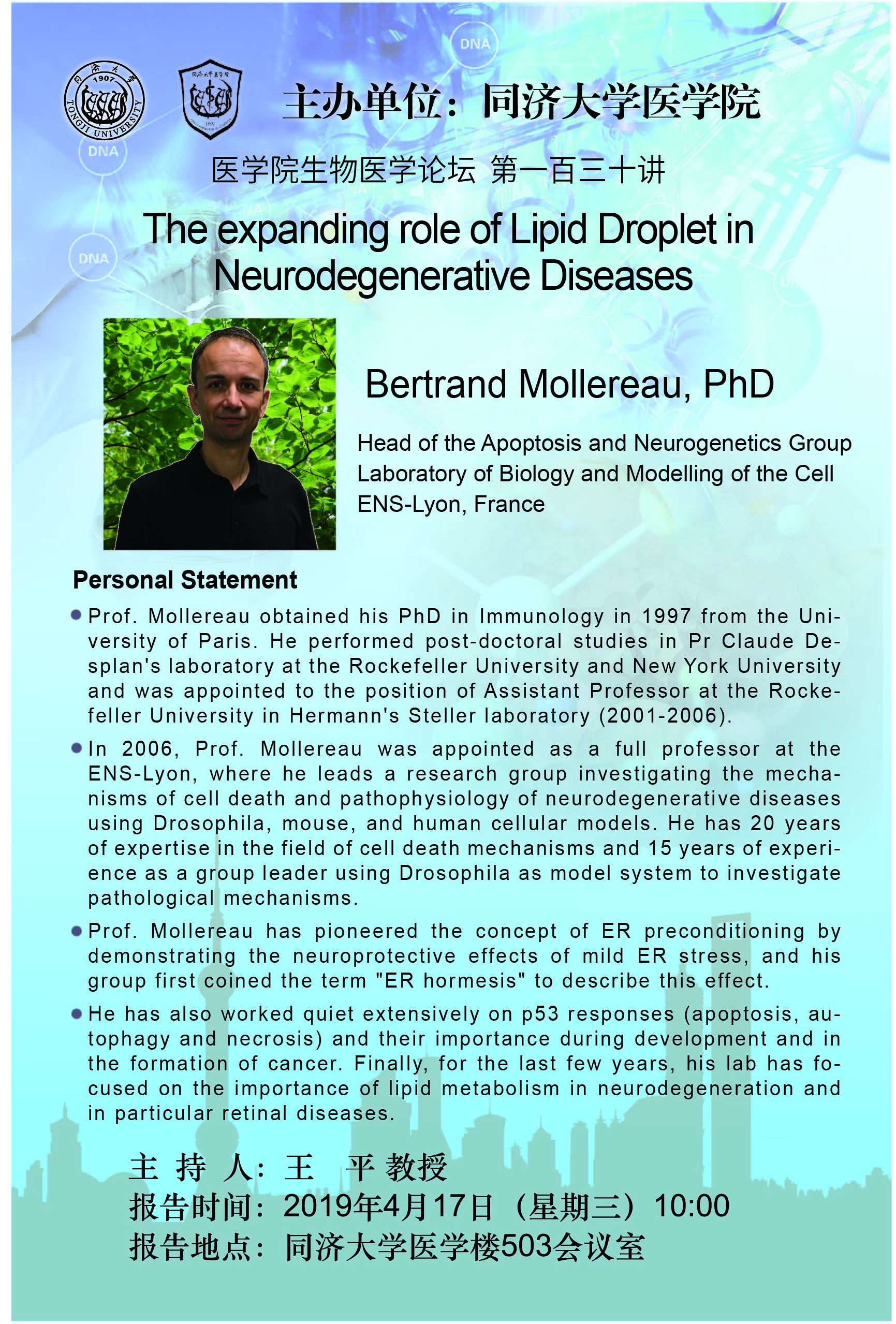 生物医学论坛第130讲:The expanding role of Lipid Droplet in Neurodegenerative Diseases