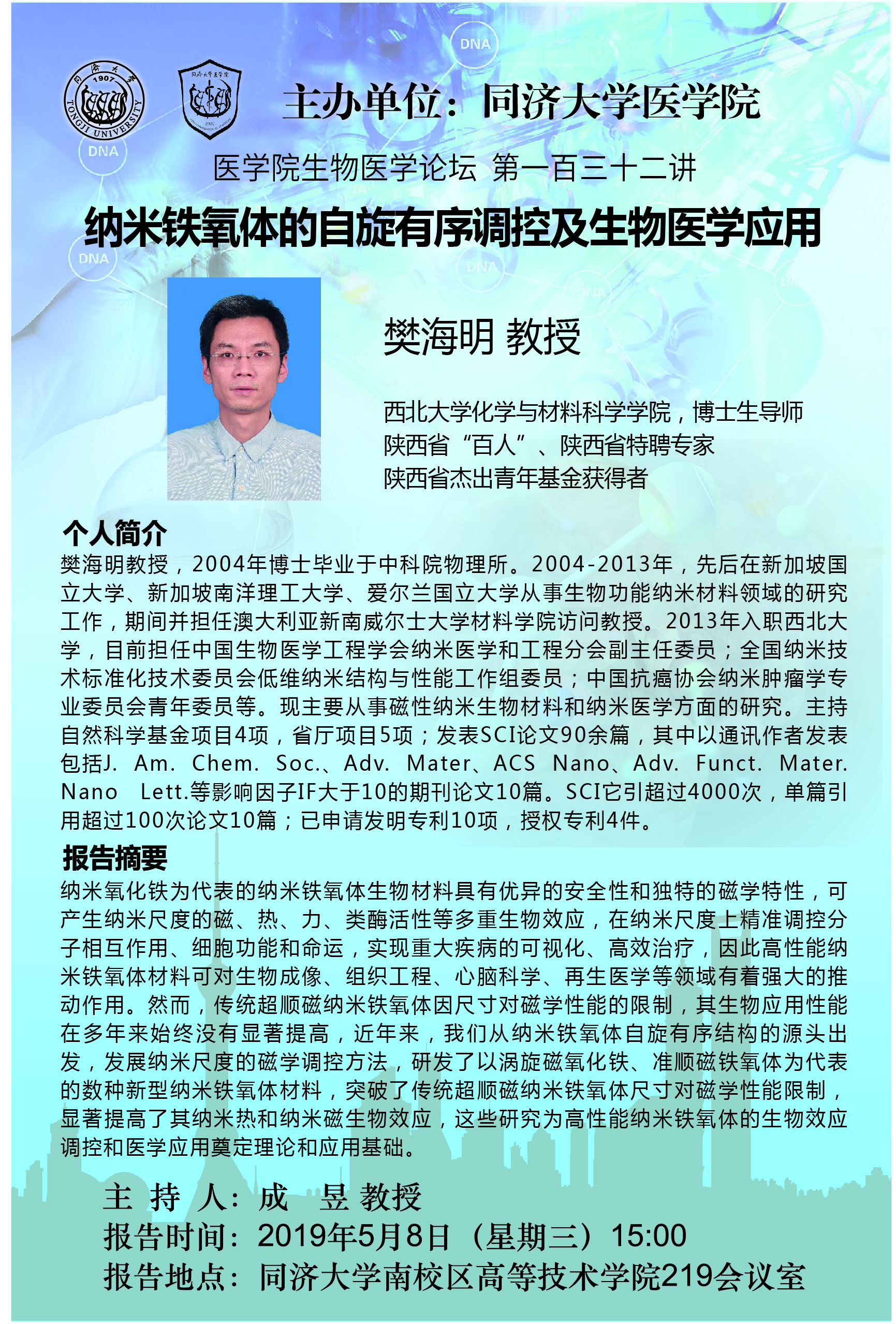 生物医学论坛第132讲:纳米铁氧体的自旋有序调控及生物医学应用