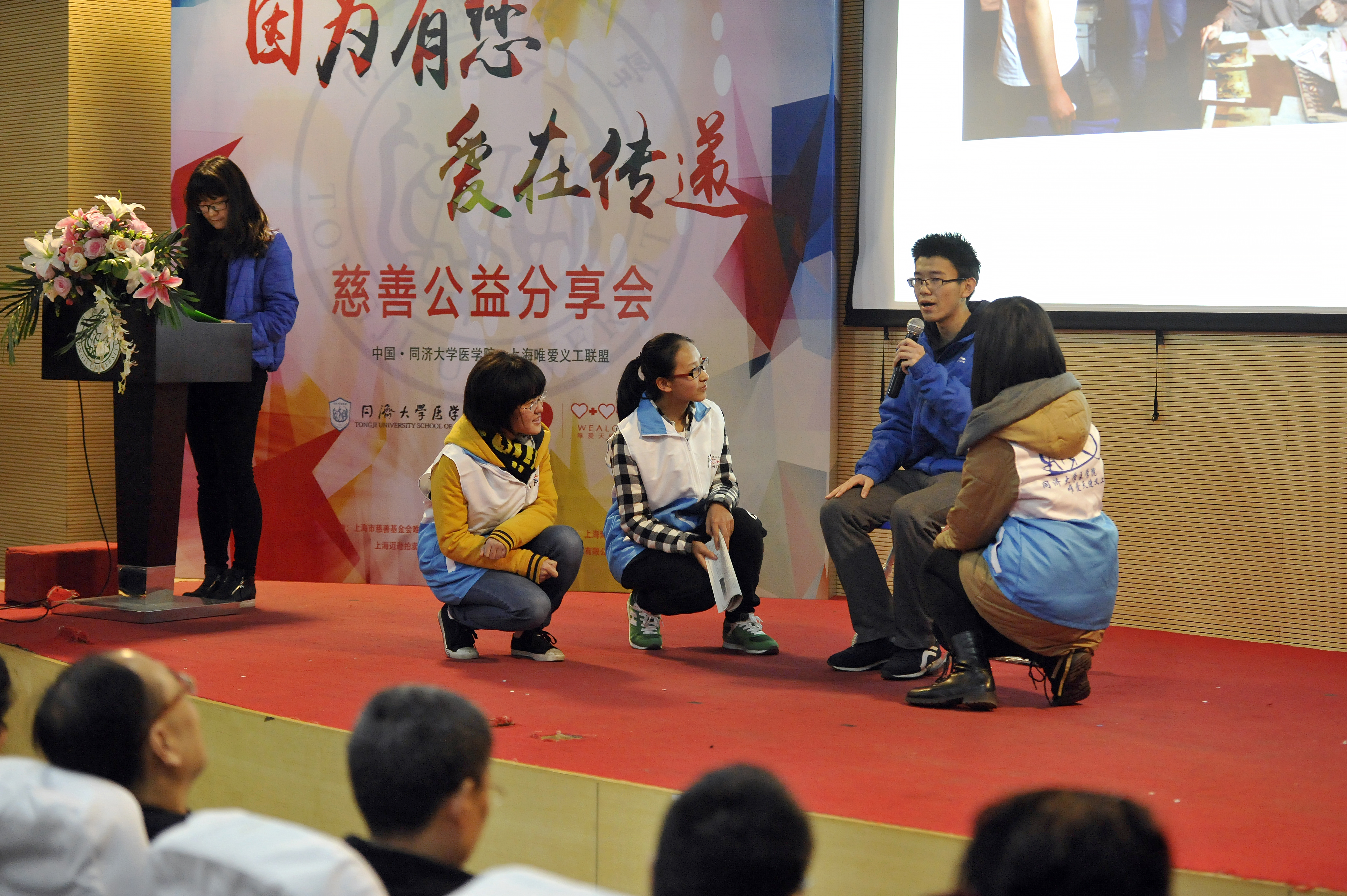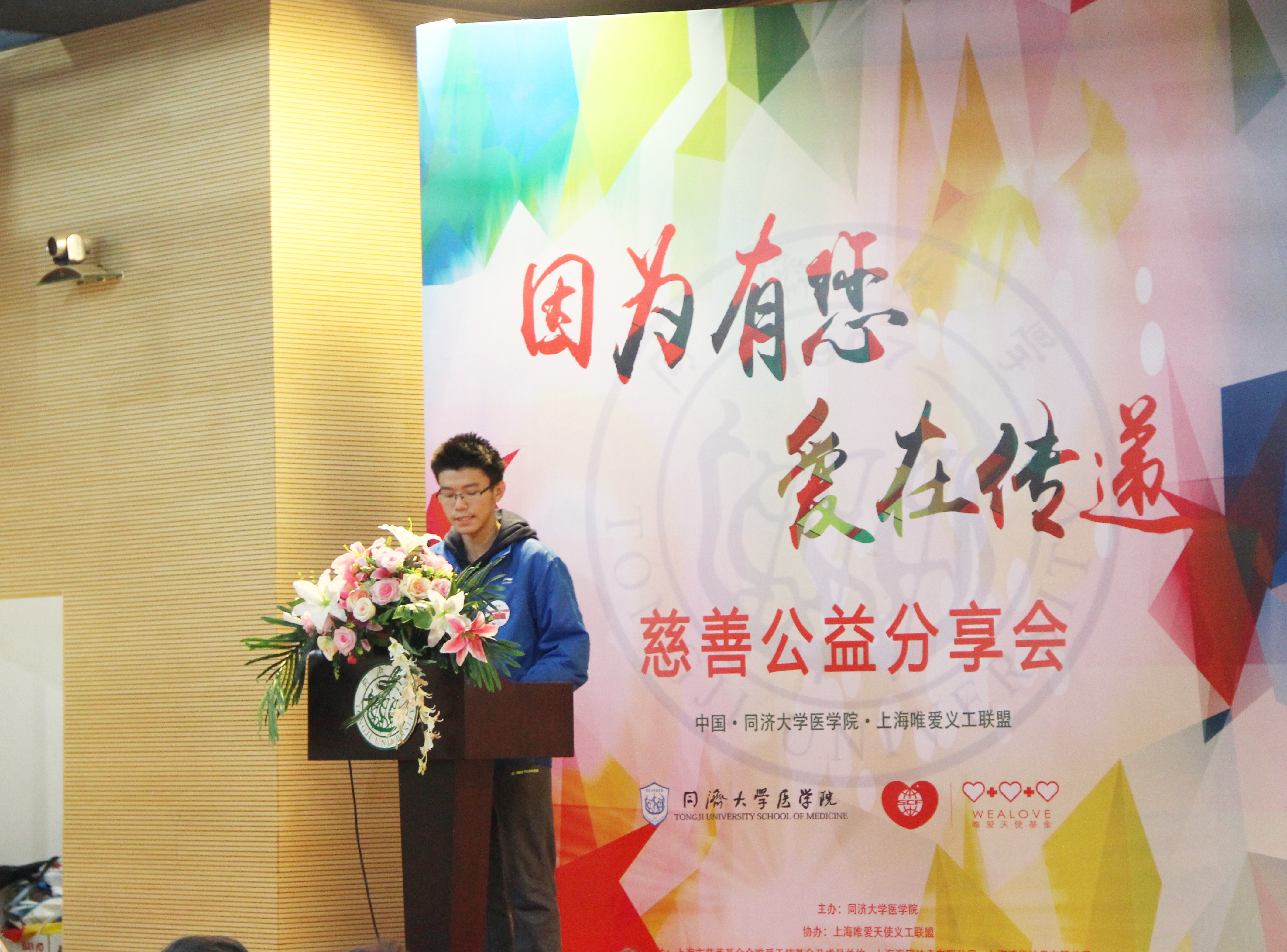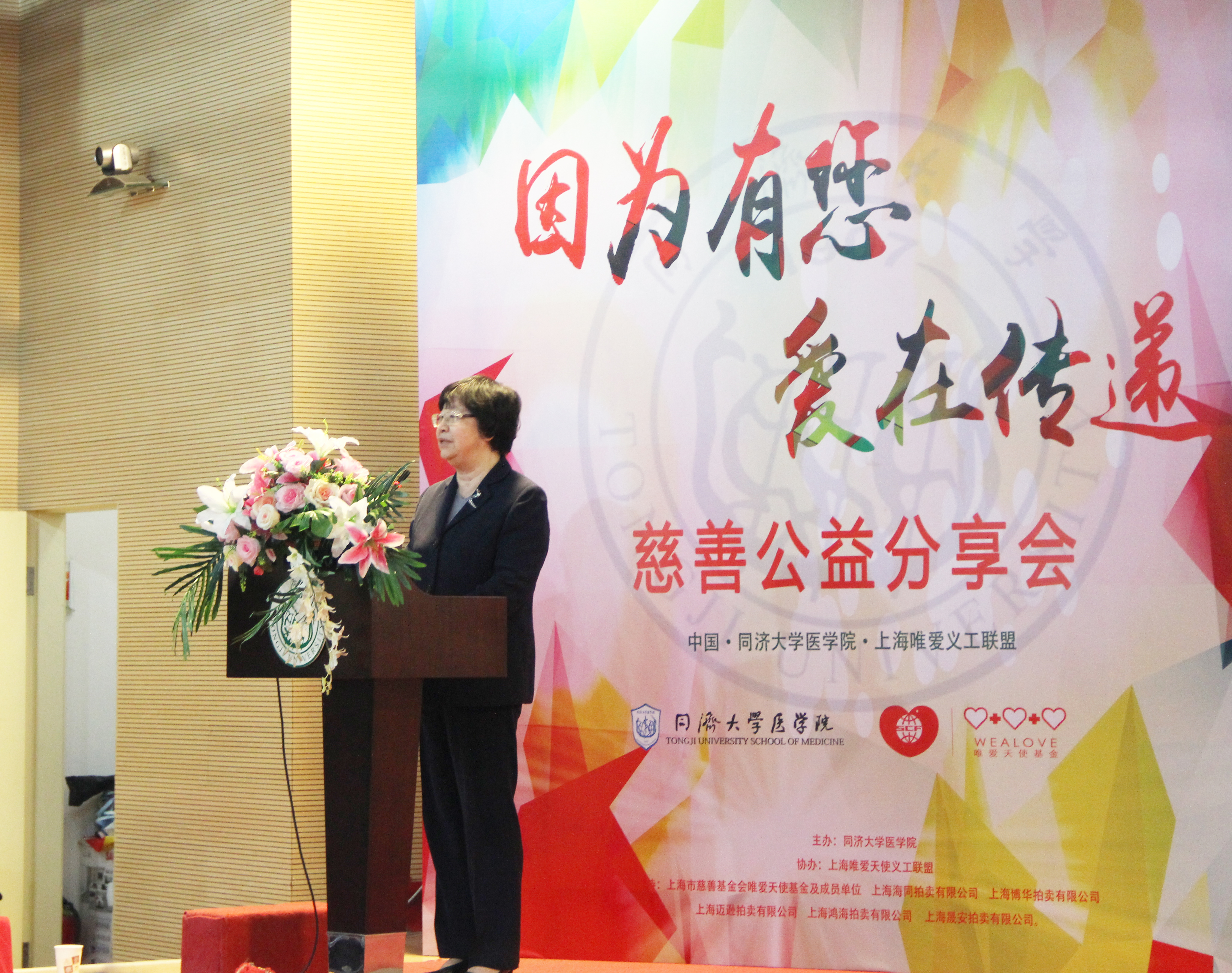 2015年12月5日上午9时30分,“唯爱传递·再出发——慈善公益分享会”在今年会官网入口经纬楼演讲厅顺利召开。今年会官网入口党委副书记徐建平,今年会官网入口党委书记姜成华,上海市慈善基金会副理事长姚宗强、副秘书长刘淑英,唯爱天使基金主任杜建英,唯爱天使基金爱心企业家代表,五角场街道代表,复旦、交大、中医药、上海健康今年会官网入口等兄弟今年会官网入口校师生代表,校团委、团委、勤工助学办、教育发展基金会、今年会官网入口领导以及来自社会的爱心竞买者、今年会官网入口学生,唯爱天使基金获助学生,唯爱天使义工联盟志愿者代表共计约250余人参与本次活动。