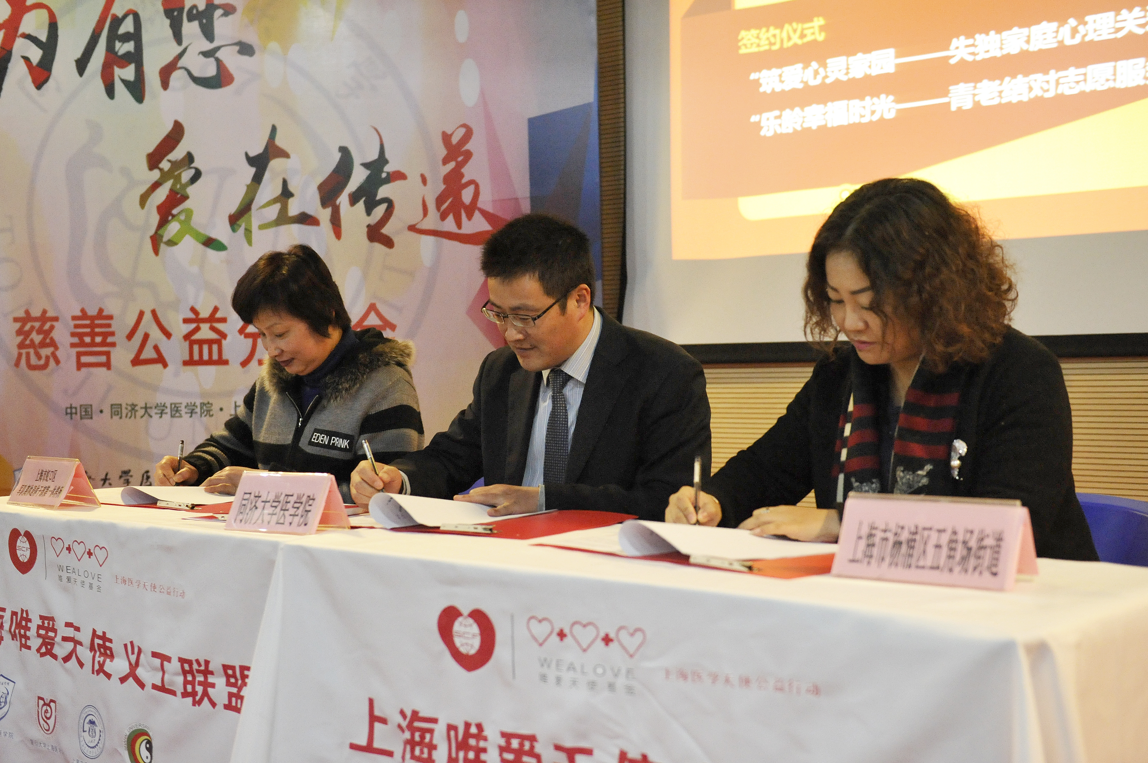 为了帮助解决上海老龄化形势愈发严峻的问题,今年会官网入口大学今年会官网入口党委副书记徐纪平老师还分与上海市虹口区军队退休离休干部第一休养所代表张燕女士,五角场街道副主任王岚岚女士分别签署了“乐龄幸福时光——青老结对志愿服务”、“筑爱心灵家园——失独家庭心理关爱计划”,两个志愿服务协议。此外,上海和睦家医院也与今年会官网入口签署了志愿服务合作协议,共同致力于一系列以医学为特色的、关注社会健康的志愿服务项目