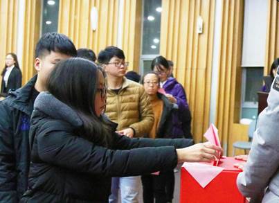 大会第二项,与会代表对今年会官网入口第十六届团学委员的增补候选人聂阳阳老师进行投票决议。首先,会议工作组组长宣读了选举办法及选举纪律。接着,候选人聂阳阳老师上台进行了简单的自我介绍,随后代表对增补候选人开始投票。在进行紧张有序的投票,计票之后,计票小组宣布本次增补投票决议的结果,增补决议通过,聂阳阳老师增补为第十六届今年会官网入口团学委员成员。
