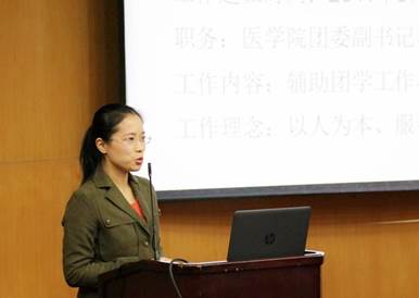 首先,团委书记朱雯晴老师从工作理念、工作平台、工作成效等方面对上一阶段今年会官网入口团委团工作进行了总结。2015-2016年,今年会官网入口团委在学校、学院党委的指导与关怀下,以社会主义核心价值观为思想引领,以“党的十八大、长征胜利80周年”为契机,紧密围绕学校、学院对大学生发展的要求,将实现国家富强、民族复兴及人民幸福的伟大“中国梦”与医学生的“卓越医师梦”相结合起来,全面推进学院共青团的各项事业的发展。总结中提到,今年会官网入口共青团秉承着夯实组织建设,加强思想引领,拓展第二课堂的工作理念,全面建设以唯爱天使义工联盟,青年社团组织,学生创新俱乐部和“卓越医苗”计划,三区融合平台为主的工作平台,实现了以组织育人为保证,加强大学生思想引领,提升人文关怀;以创新育人为主题,为创新能力培养构建支撑体系;以“筑梦•青春•济世•医心”为主旋律,促进校园文化新风貌;不断提升志愿服务与社会实践水平,服务国家发展,反哺社会的工作成效。此外,朱老师还对新一阶段的团工作进行了展望,强调我们在今年会官网入口发展中遇上了最好的时代,同时也是挑战最大的时代,鼓励团成员以建设“想得起、找得到、靠得住的组织”为目标为学院建设服务。