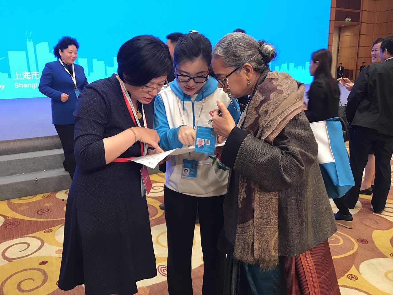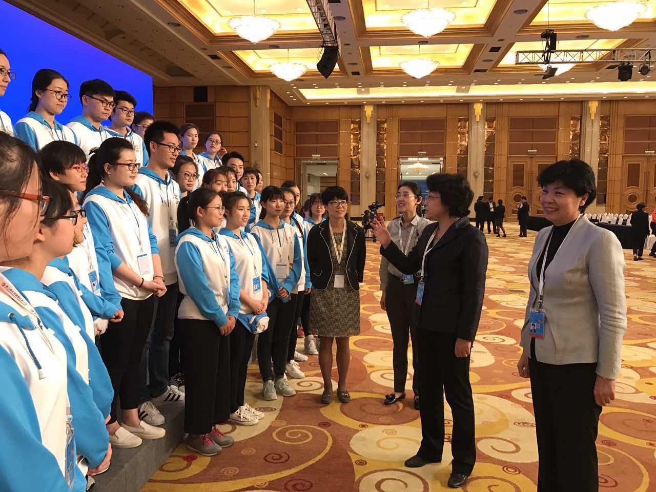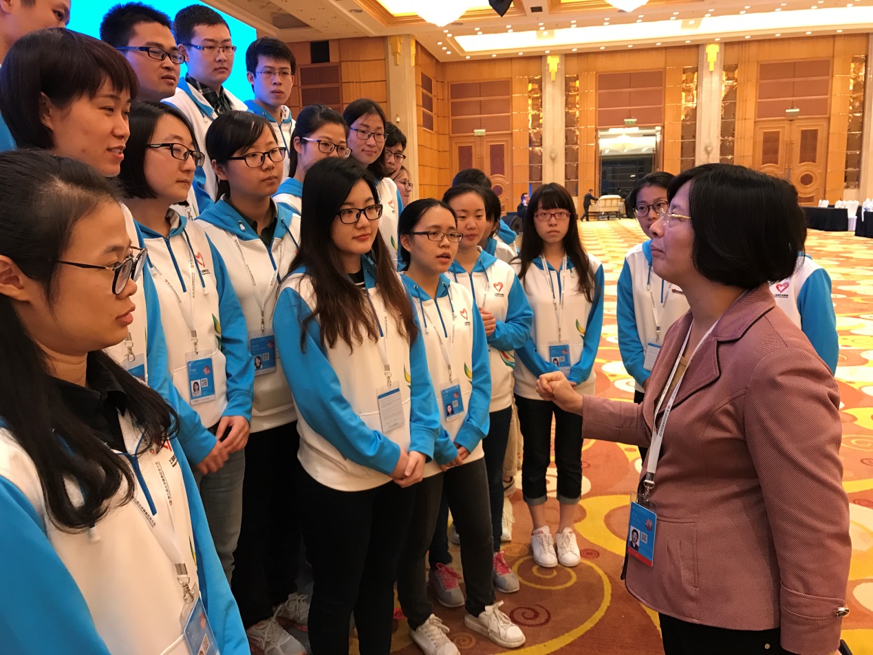 (大会志愿者与国家卫计委副主任崔丽、上海市副市长翁铁慧合影)
