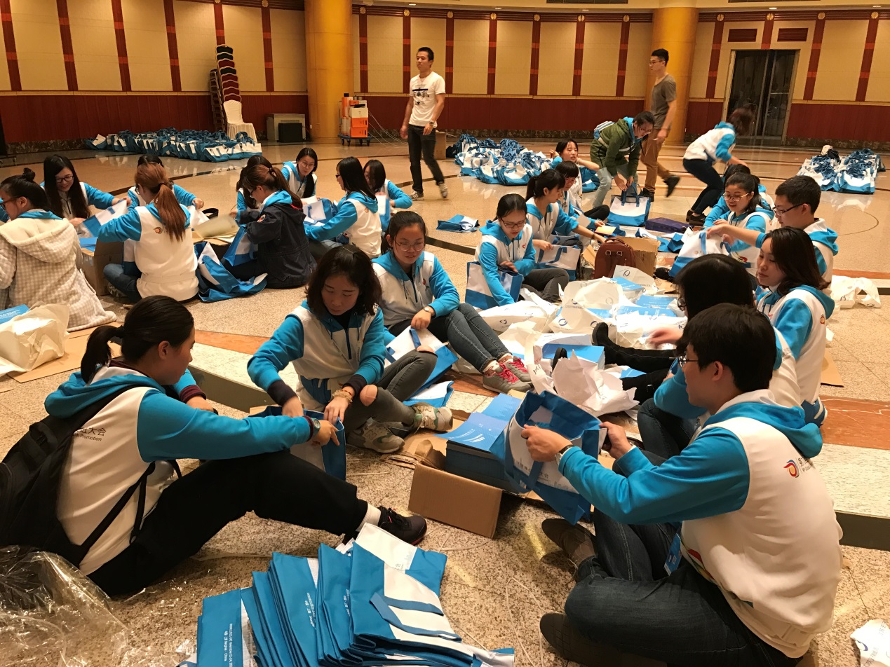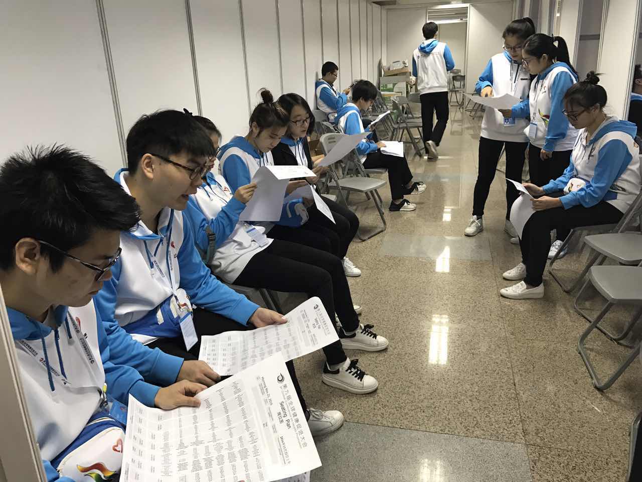 在穿着志愿服之前,同学们都是穿着白大褂在今年会官网入口实验室和各个附属医院实习轮岗的大五学生和研究生,尽管课程或科研、临床压力很重,但接到任务后,每天都坚持早上5点半穿上志愿者工作服,戴上志愿者证,挎上腰包,以最饱满的热情和风貌从学校和医院出发来到国际会议中心,拿出十二分力气参加彩排。在彩排中,同济志愿者肩负重要任务,除了打包数千份资料袋、发放检查同传耳机、指引座位、维护秩序之外,他们还需要在在开幕式前引导1300余位来自190多个国家的领导嘉宾入座,并需要在5分钟内准确带领100多名市长上台合影。