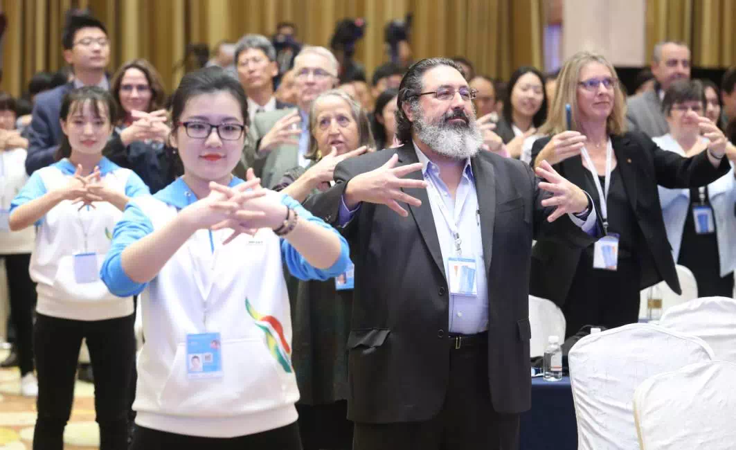 第一节转肩开肺、第二节转颈明目、第三节理气排浊、第四节叉手指节、第五节敲击掌根……这套由志愿者开发和领操的《小康康健康操》共分为五节,在小康康的带领下,各个国籍、各种肤色的中外嘉宾纷纷活动起肩部、头部、手臂、手掌,让整个大会又平添了不少活跃而健康的因子。
