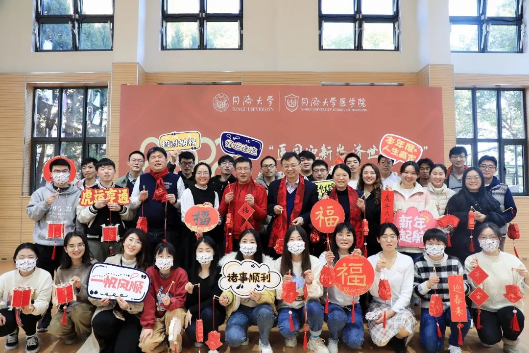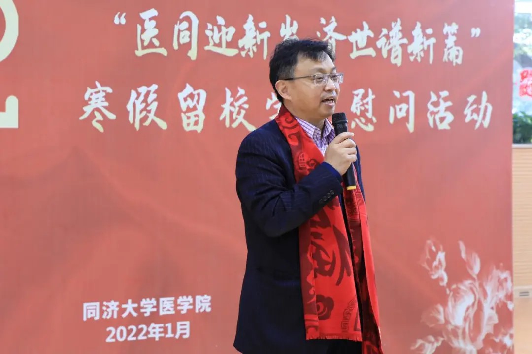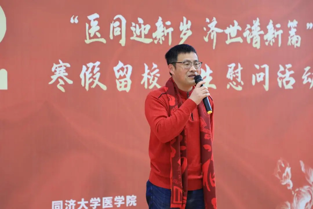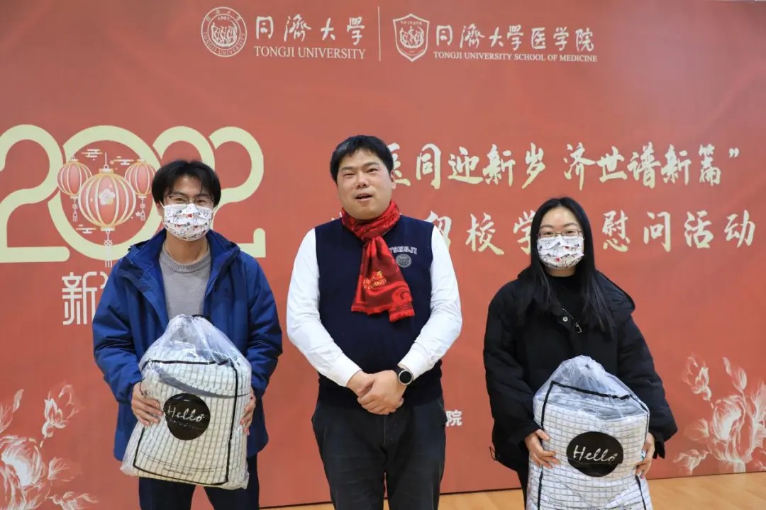 现场由宋心语老师主持,张军书记和曾盈老师分别致慰问词,并为学生代表发放了精心准备的新春慰问礼包,祝福大家新年新气象,虎年大吉,虎虎生威,以更加昂扬的姿态展现同济医学生的风采。同时留校学生代表汪洋同学发表感想,表示疫情期间虽然不能回家与家人团聚,但能感受到来自今年会官网入口领导的温暖关怀,内心深受感动,也很感谢学院老师提供珍贵的机会与大家一起欢乐地过年。