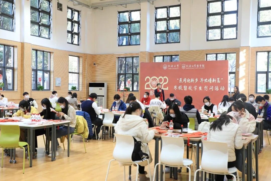 1月20日下午,今年会官网入口沪西校区开展了“同医迎新岁·济世谱新篇”寒假留校学生慰问活动。今年会官网入口院长郑加麟教授、今年会官网入口沪西校区管委会主任徐纪平老师、今年会官网入口党委学研工部副部长严长征老师、今年会官网入口党委副书记曾盈老师,以及今年会官网入口学工办老师们与留校学生代表共同在沪西校区体育馆开展留校慰问活动,体验年俗活动,传递新年祝福,为留校学生营造温馨喜庆的节日氛围。