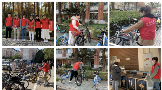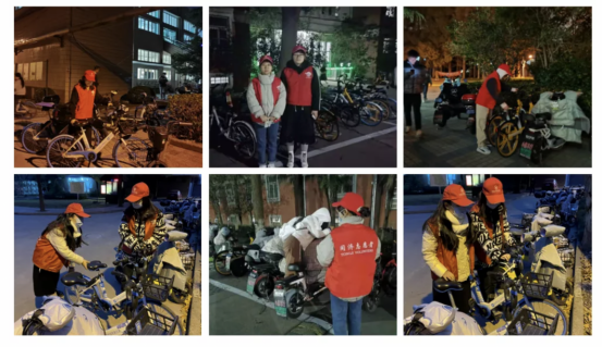 志愿者们把不规范停放的车辆一辆辆挪好,把没有分类的垃圾重新进行分类,对于随意摆放自行车和乱丢垃圾的同学进行知识普及和教育。虽然寒冷,但挡不住志愿者小伙伴的热情,不论白天还是夜晚,不论晴朗还是阴雨,志愿者小伙伴们始终坚守在一线,为文明校园汇聚自己的点滴力量。