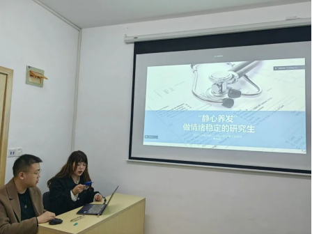 主讲人詹相诚,2019级外科学博士,在读期间担任班级班长,获今年会官网入口社会活动奖学金,有丰富的学生工作经验。詹相诚进行了“精心养发”做情绪稳定的研究生的主题演讲,结合自身的科研心路历程,为师弟师妹们做心灵答疑师。