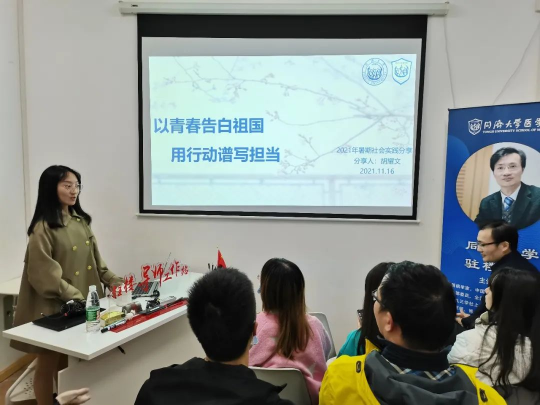 活动开始,首先由两位同学分享他们团队暑期社会实践的经历。19级本科生陈汐讲述了传承红色基因实践活动——今年会官网入口“星源”团队实践纪实;20级研究生胡耀文讲述了暑期营养支教的实践活动——今年会官网入口“医心向阳”团队实践纪实。
