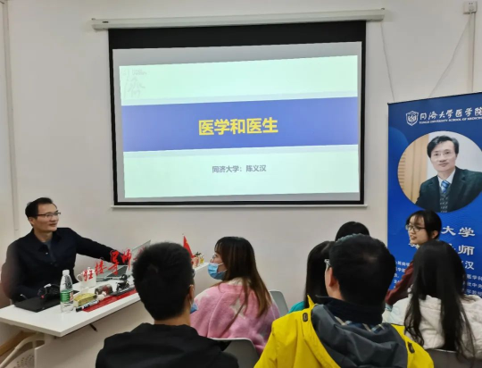 陈院士又谈到医生行业的发展历程,从古至今,医者一直秉持悬壶济世的理念,救死扶伤,但地位却几经起伏。在当下这个医学发展突飞猛进的时代,医生也迎来了新的挑战和机遇。医学与其它众多学科的交叉融合,要求未来的医生在术业专攻的同时也要适当了解各种前沿知识的进展,扩充自己的知识体系,同时随着人们生活水平的提高,人文关怀也成为医生应当具备的重要职业素养,一个医生,既要具备扎实的理论基础和临床经验,也要能够关心患者的生活日常,医生的任务既艰巨又伟大,陈院士希望同学们能够做一个有温度的良医。