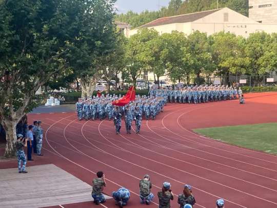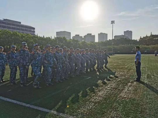 军训的第二天,上海高温预警拉响,不论是同学们,还是教官,在骄阳的炙烤下,都汗流浃背,热得满头大汗。教官们严格要求,同学们也认真对待,齐步走,正步走,一个站姿,一个转身,都是一次次的挥汗如雨,一次次的严于律己。坚毅自信者强,上下同欲者胜。苦中作乐,亦需风雨同舟。一首首战歌在各个连队此起彼伏,拉歌的乐趣让我们暂时忘却了炎热的天气,增近了彼此的距离。我想,或许正是这样高强度的训练,才会打造出一支铁血的部队,一颗丹心,只为祖国,一腔热血,只为强军,或许军训只是一个契机,过后,我们又会回到各自的平行轨道,但它同时更是一份保险,为将来的某一个时刻准备着。