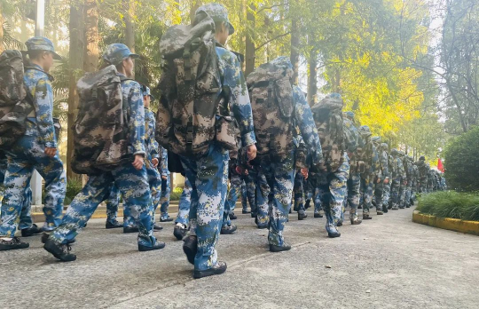 上午的任务是营与营亮相展示,领导的慰问讲话让我们明白在疫情防控中军训的机会来之不易。下午就开始了轰轰烈烈的行军拉练,虽然只有短短的两公里,但负重前行坚持下来谈何容易?但我们一营,这只坚强的队伍,没有一人掉队,也无一声怨言。我似乎悟出了长征精神的一角:有信仰,有理想的队伍怎能不胜利。