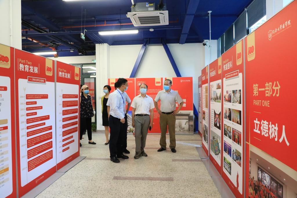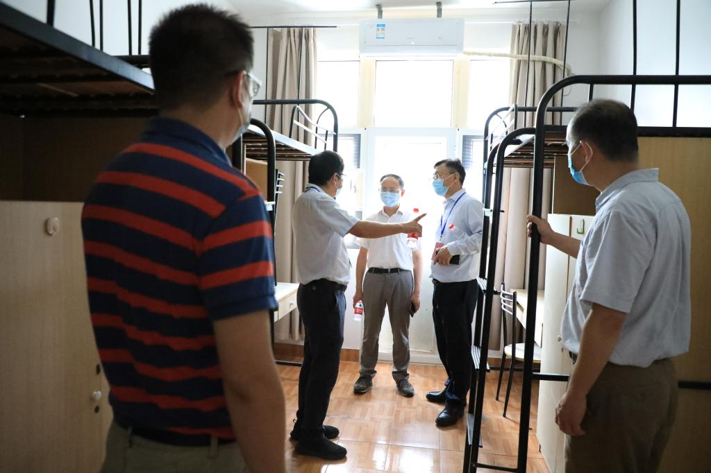8月27日副校长陈义汉同我院院长郑加麟、党委书记张军、党委副书记曾盈一起走访校门口行李转运点、教学楼、学生社区等处,视察迎新准备工作。