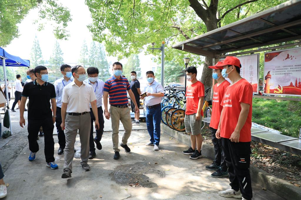 8月28日校党委副书记彭震伟、校武装部副部长(主持工作)胡少卿、沪西校区管委办主任徐纪平同我院党委副书记曾盈一起走访校门口行李转运点、人脸识别点、学生社区等处,对迎新准备工作做指导。